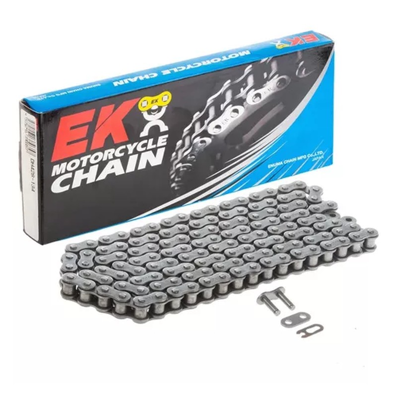 The 525DEH sits a step above the 525H in EK’s heavy-duty line – thicker plates and tighter tolerances stretch out service life on harder-working 600-750cc bikes that don’t justify a sealed chain.